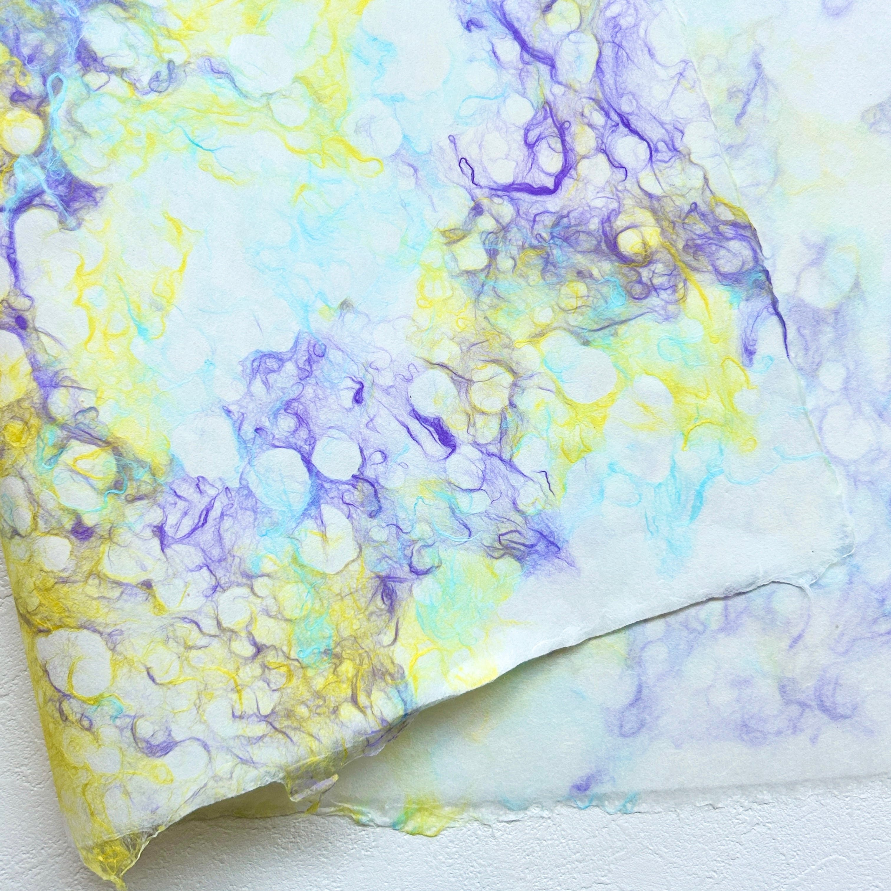 . 鮮やかな染め和紙は、1枚1枚手作業で染めております。 手漉き和紙を1枚ずつ手揉みし染めているので 自然にできる色の混じり具合が魅力です。 ちぎり絵や切り絵、手芸工作材料、コラージュ素材など 様々な用途でお使いいただけます。 画像4枚目のように丸くちぎってでんぷん糊で色々なものに貼ると オリジナルのインテリア雑貨が作れます。 <作品例> 画像5〜7枚目→グラスに貼って… LEDキャンドルライトを入れれば和紙越しの灯りをお楽しみいただけます 画像8、9枚目→インテリアパネル 画像10枚目→箱に貼ってインテリアBOXやギフトBOXに 画像11枚目→厚紙で作った封筒に和紙を貼った和紙封筒 . サイズ:約35cm×22.5cm ※手作りのため大きさが多少異なります。 内容:10色入り ※ものにより色の組み合わせが異なる為、 画像の組み合わせのものが届くとは限りません。 (画像1〜3枚目参照) . 【注意事項・備考】 1個以上ご注文いただいた場合、同じ色のセットを複数個お届けする場合がございます。 写真の染め和紙はあくまでもイメージですので 全く同じものが届くとは限りません。 紙により質感、強度等が異なります。 商品の色など実物を再現する画像調整をしていますが、 ご利用モニターの設定等で、画面上、実物とは異なる表示になる場合があります。 備考欄に色味のご希望を入力していただければ 可能な限り対応させていただきますが、 在庫状況によっては対応が難しい場合もございますのでご了承ください。 ※備考欄通りに対応できなかった場合の返品はいたしかねます。 【お届け先が離島の場合】 離島へのお届けをご希望の場合はこちらをお読みください。 →https://shiyou.base.shop/items/109180543