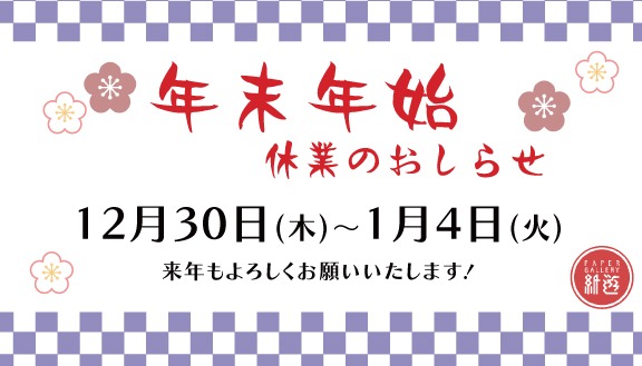 誠に勝手ながら、年末年始休業日を下記のとおりとさせていただきます。