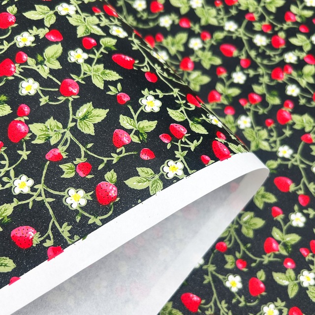 . ※掲載商品は店頭販売もしておりますので、売り切れの場合は御容赦下さい。 . サイズ:原紙寸法 100cm×66cm/柄部分 92cm×60cm 染色方法:手捺染 産地:京都府 . 伝統の技法と洗練されたデザインが融合した上品な友禅紙。 真っ赤ないちごと白い小花を散りばめた、苺畑のような一枚です。 深みのある黒が全体を引き締めているので甘くなりすぎず、可愛らしさの中に大人っぽさも感じられます。 数種類の顔料を混合して一色ごとに色を創り、型を合わせ、 スケージ(大きなヘラ)で一色ずつ色を重ね、乾燥させるという作業の繰り返しで 大変手間のかかる手法ですが、その分発色が良く美しく仕上がります。 折り紙、和紙人形、くるみ絵、貼り箱、 工作、ハンドメイド、コラージュ素材、 撮影用背景、包装紙(ラッピング)など様々な用途でお使いいただけます。 紙ものが好きな方や紙ものを集めている方にもおすすめの商品です。 . 【備考】 掲載商品は店頭販売もしておりますので、売り切れの場合は御容赦下さい。 商品の色など実物を再現する画像調整をしていますが、 ご利用モニターの設定等で、画面上、実物とは異なる表示になる場合があります。 【お届け先が離島の場合】 離島へのお届けをご希望の場合はこちらをお読みください。 →https://shiyou.base.shop/items/109180543