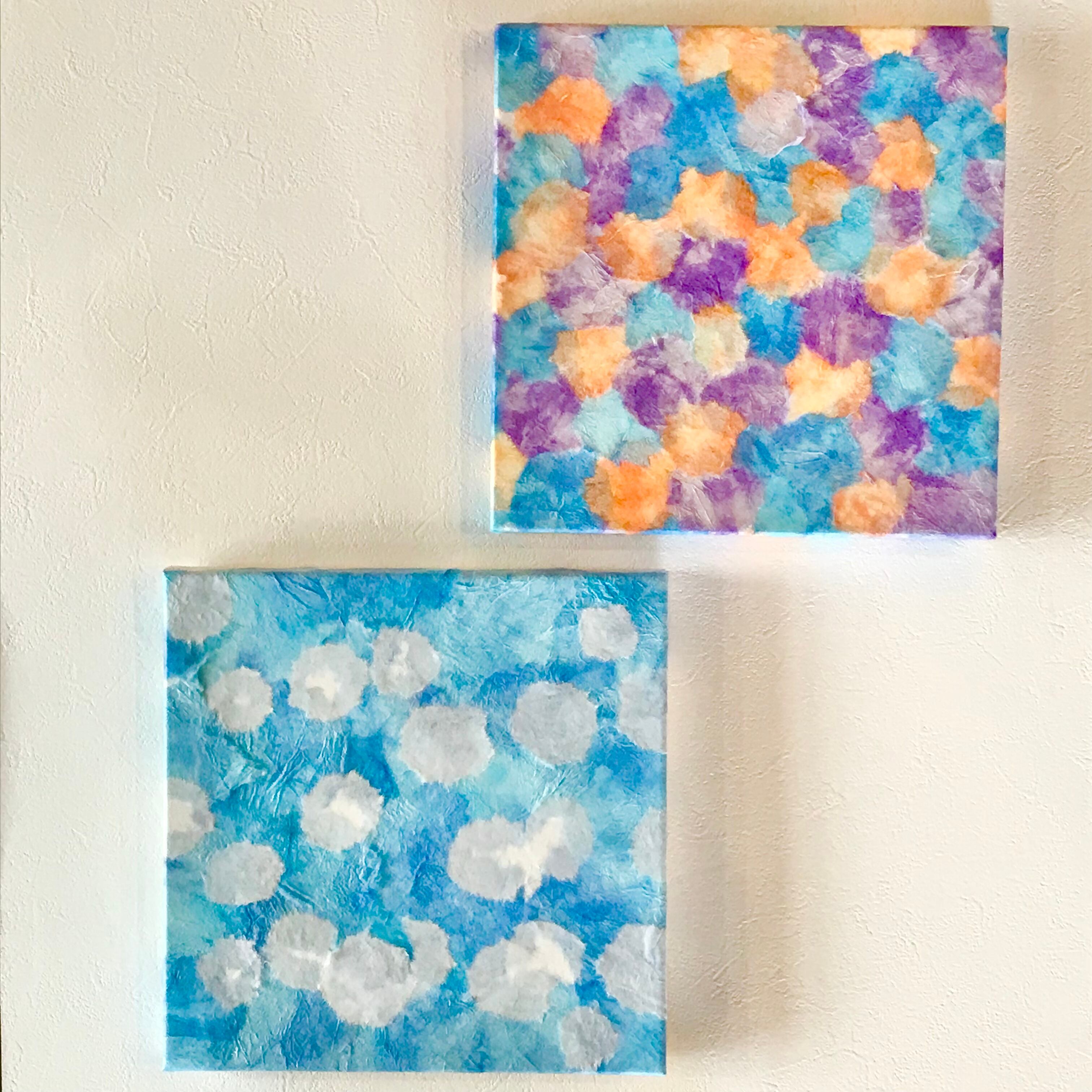 画像5枚目のように丸くちぎってでんぷん糊で色々なものに貼ると