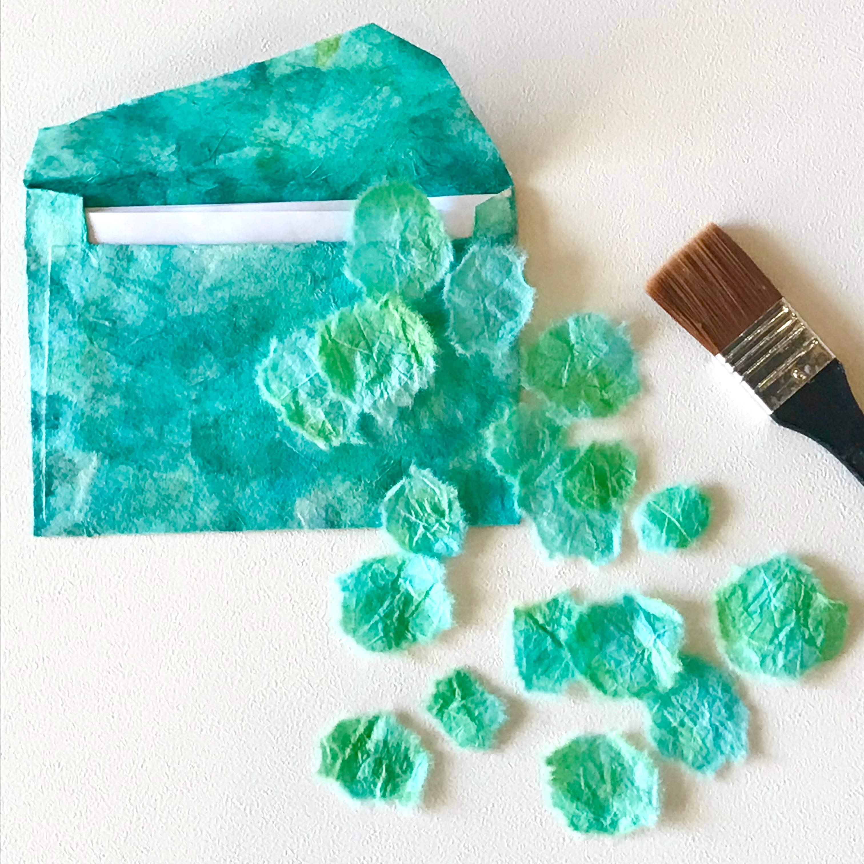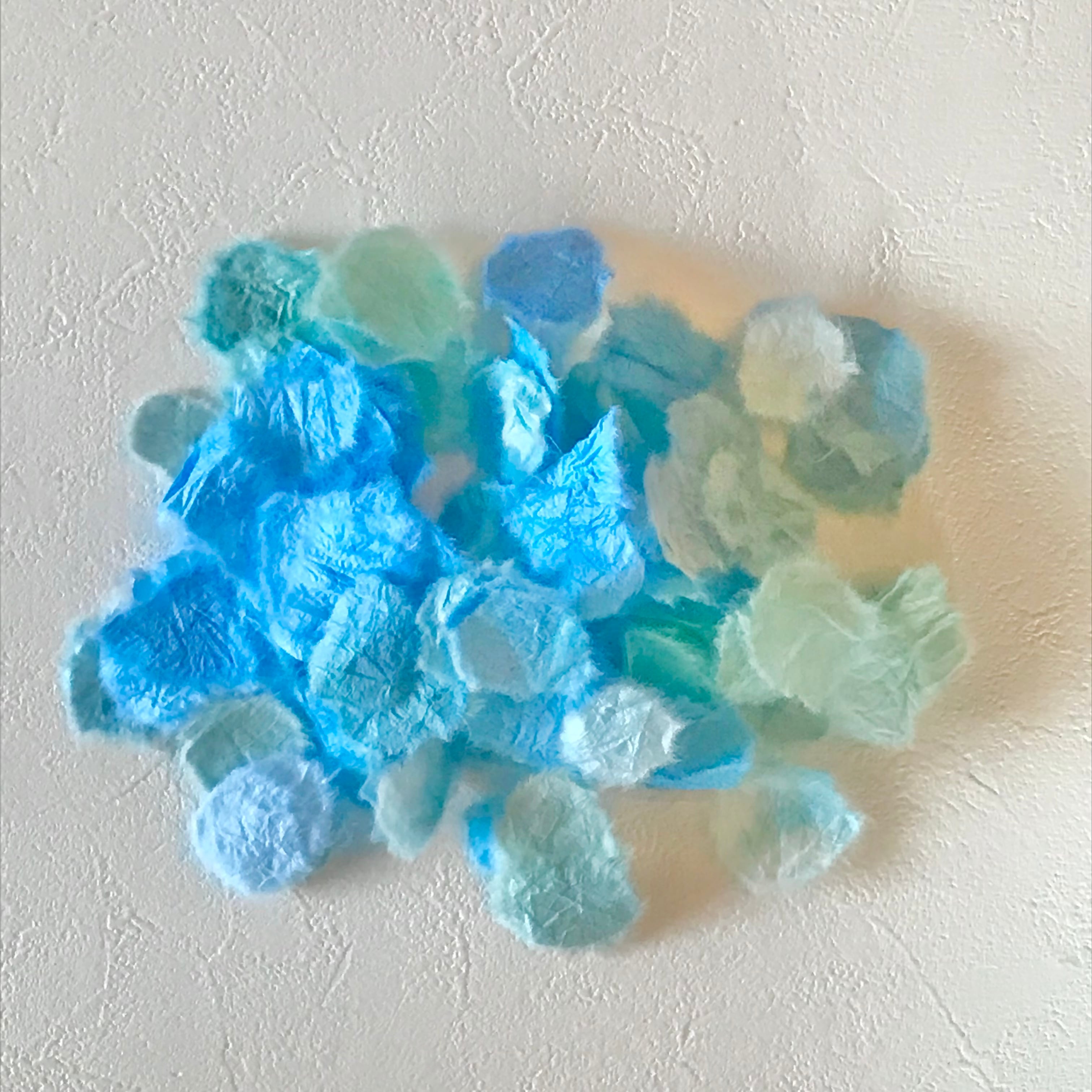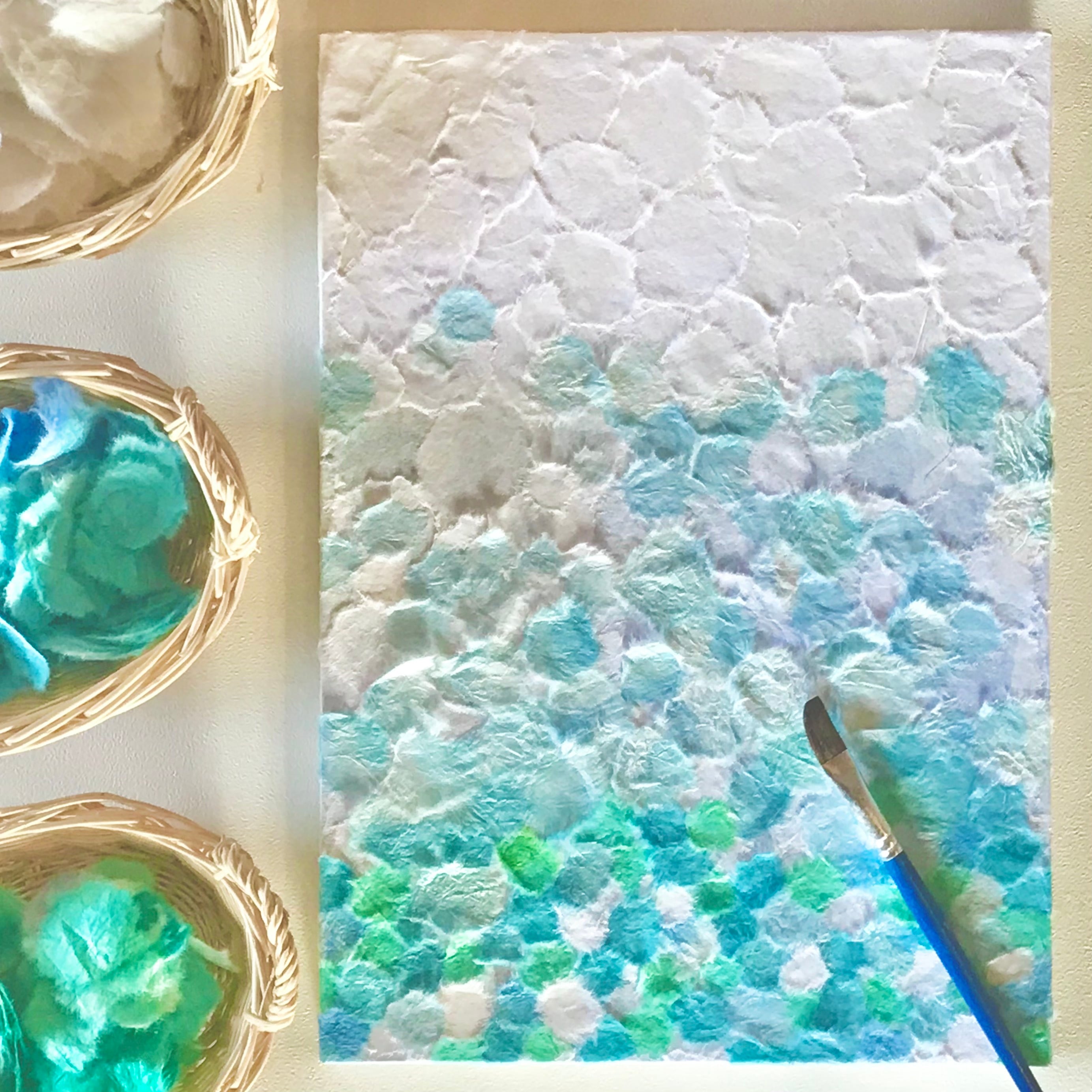 画像5枚目のように丸くちぎってでんぷん糊で色々なものに貼ると