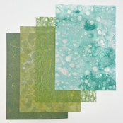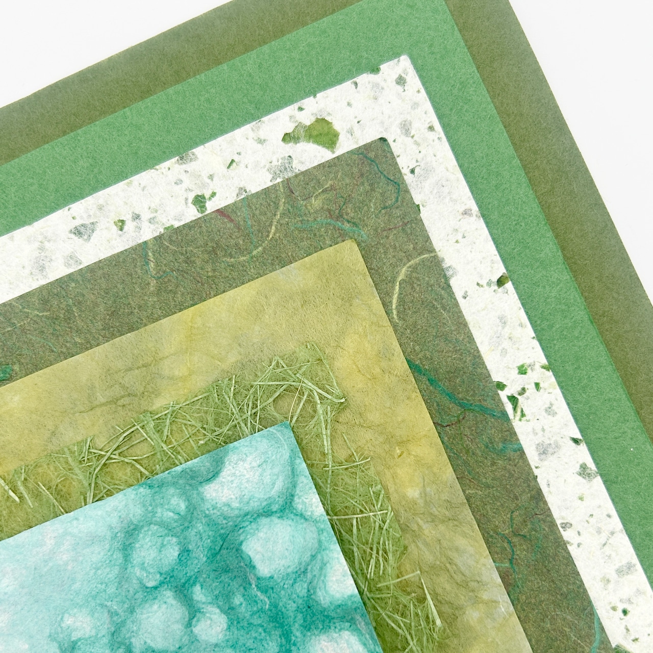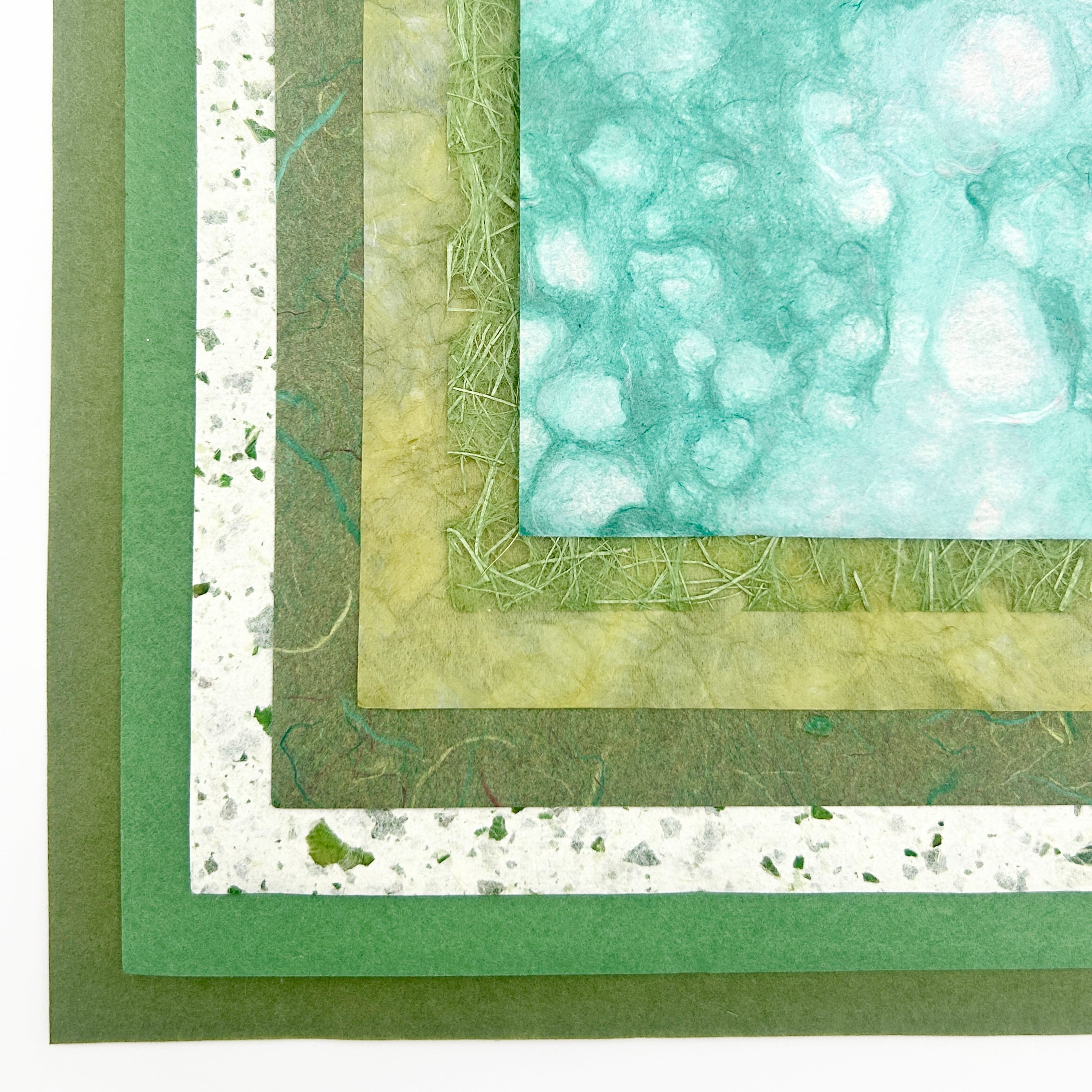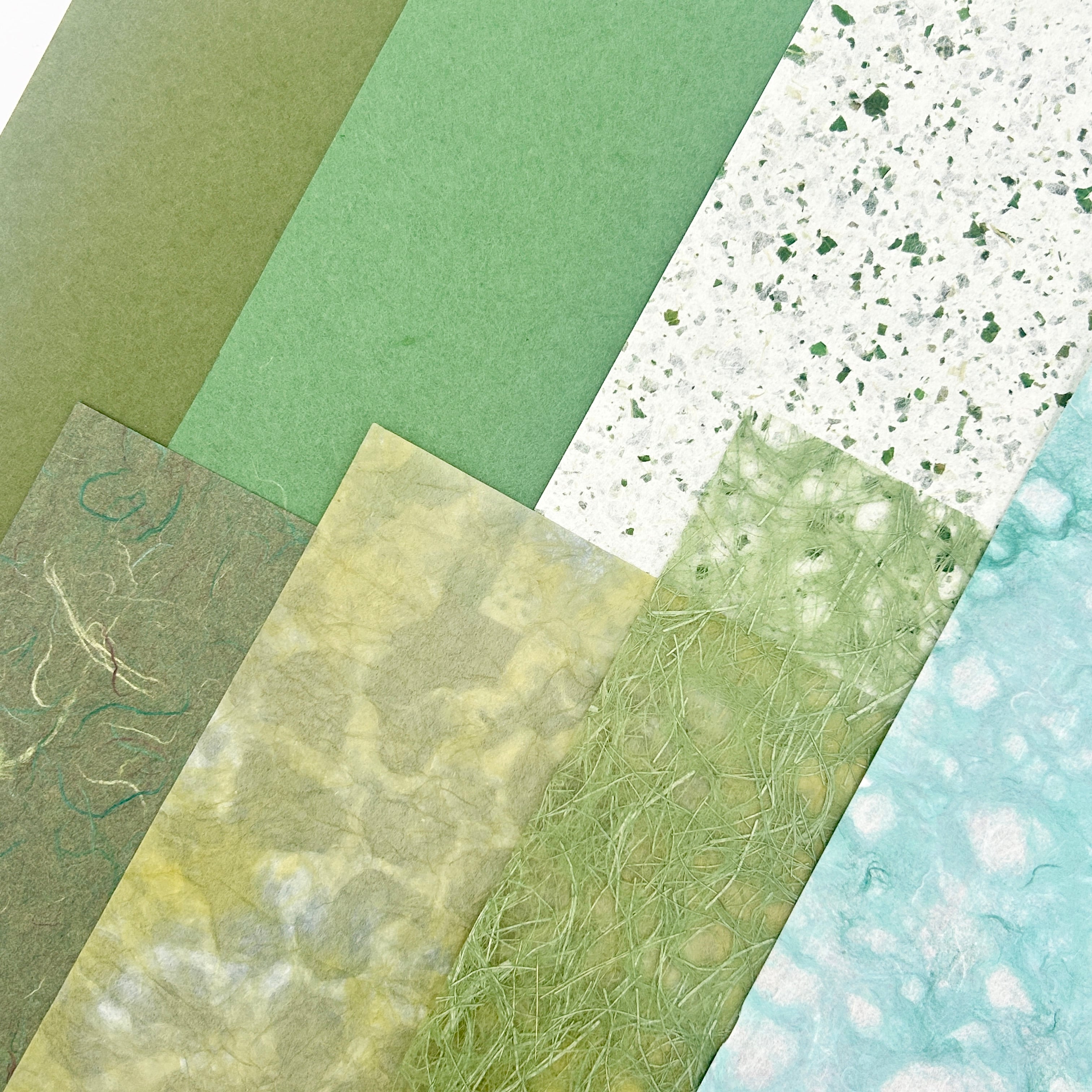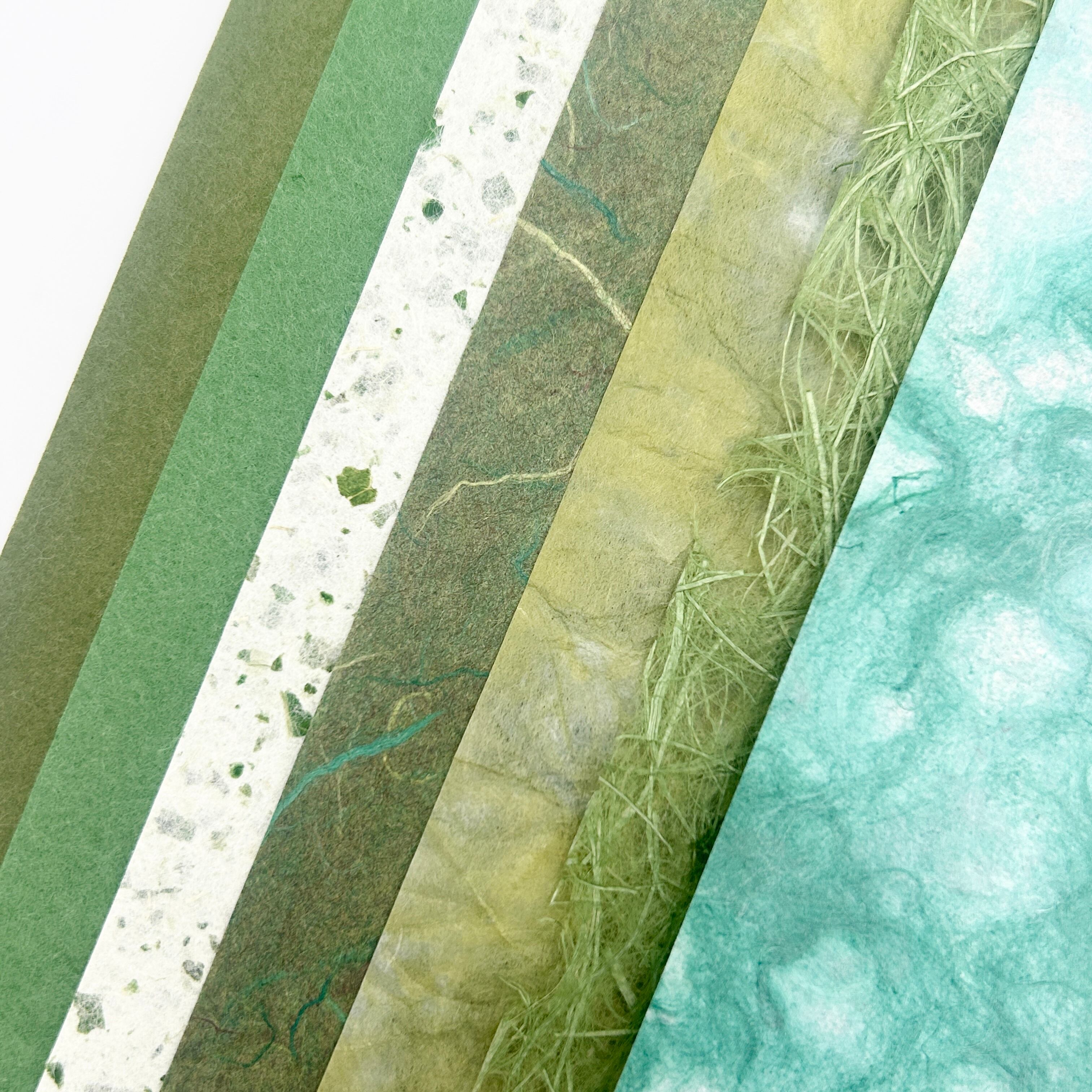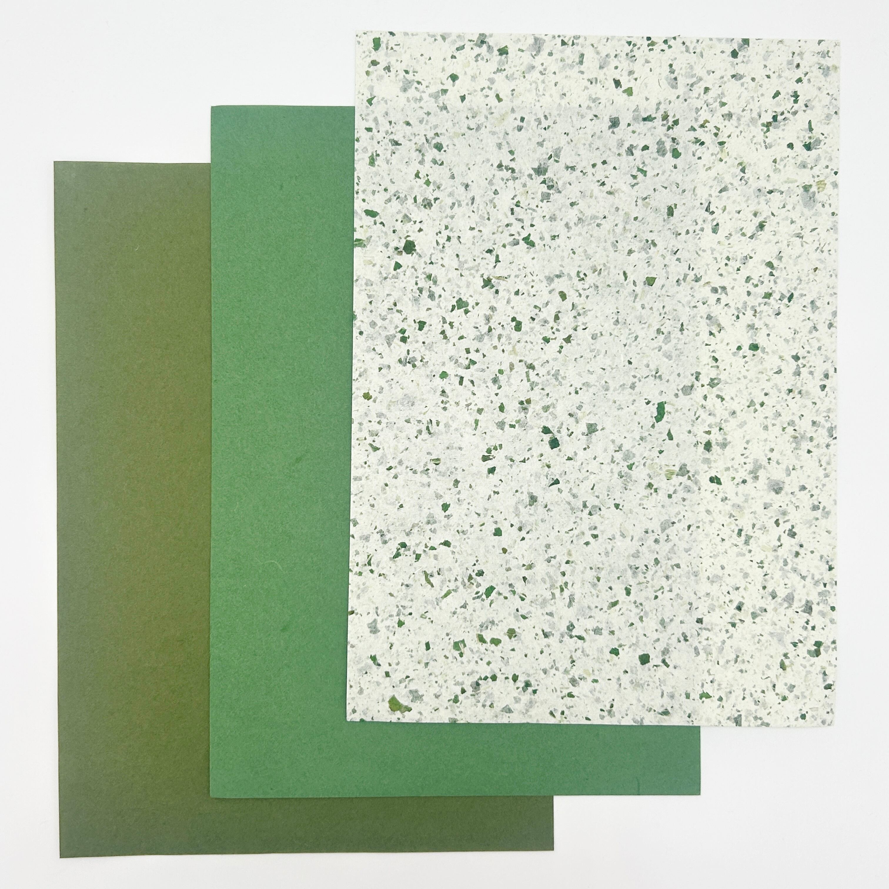 年輪を重ねた常緑のような色合いの和紙を集め、