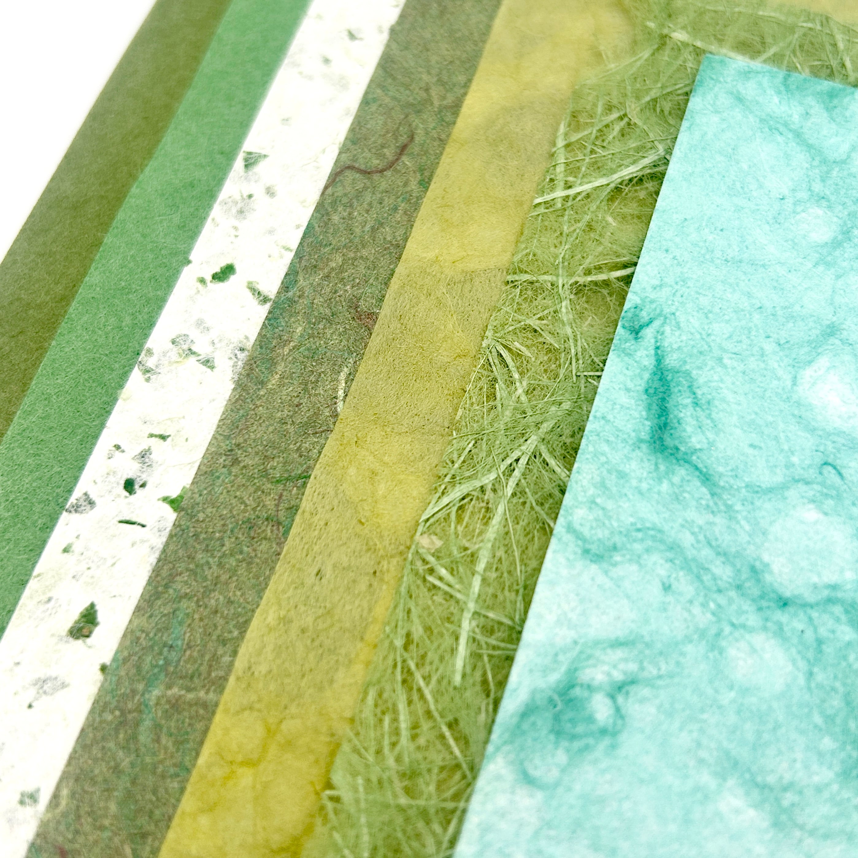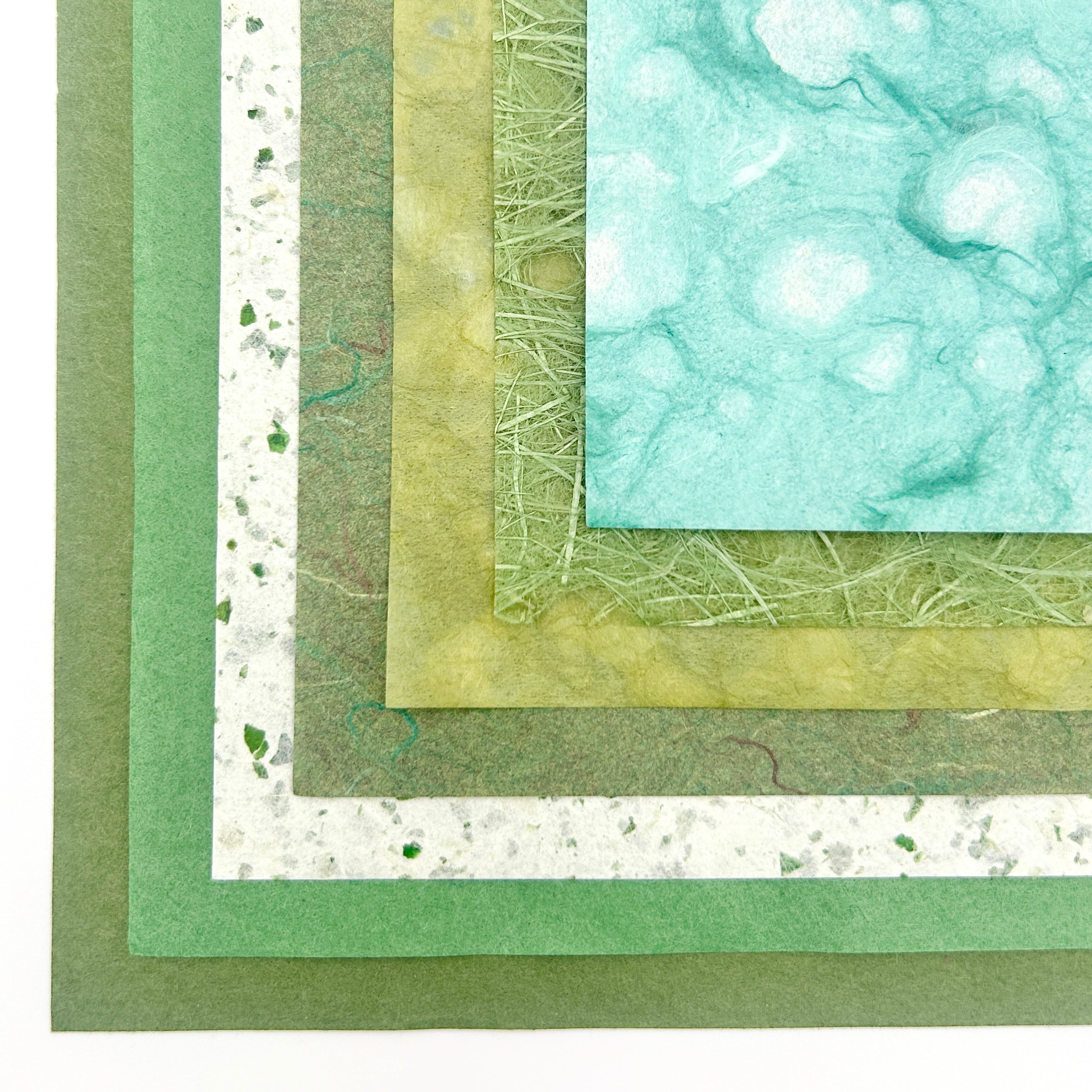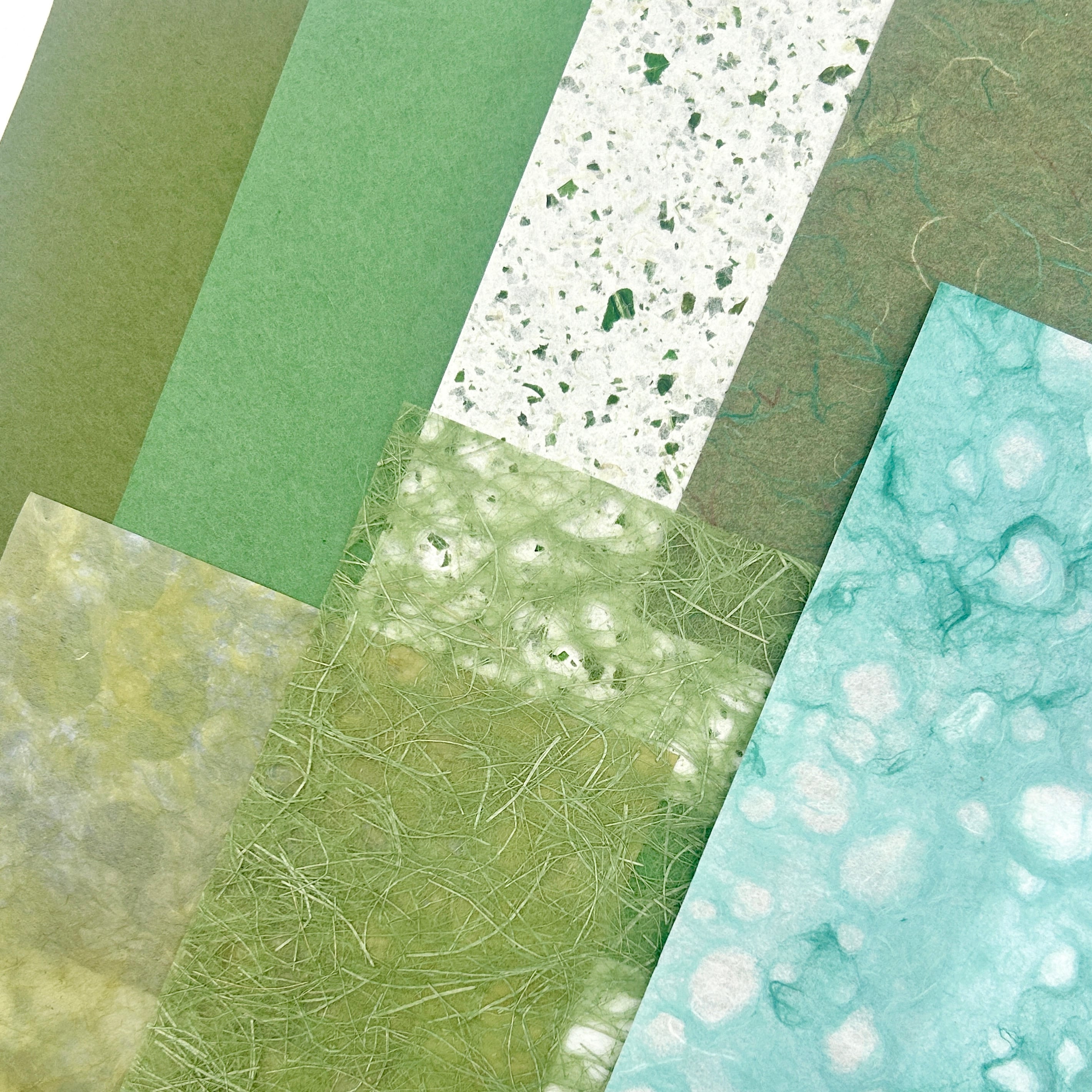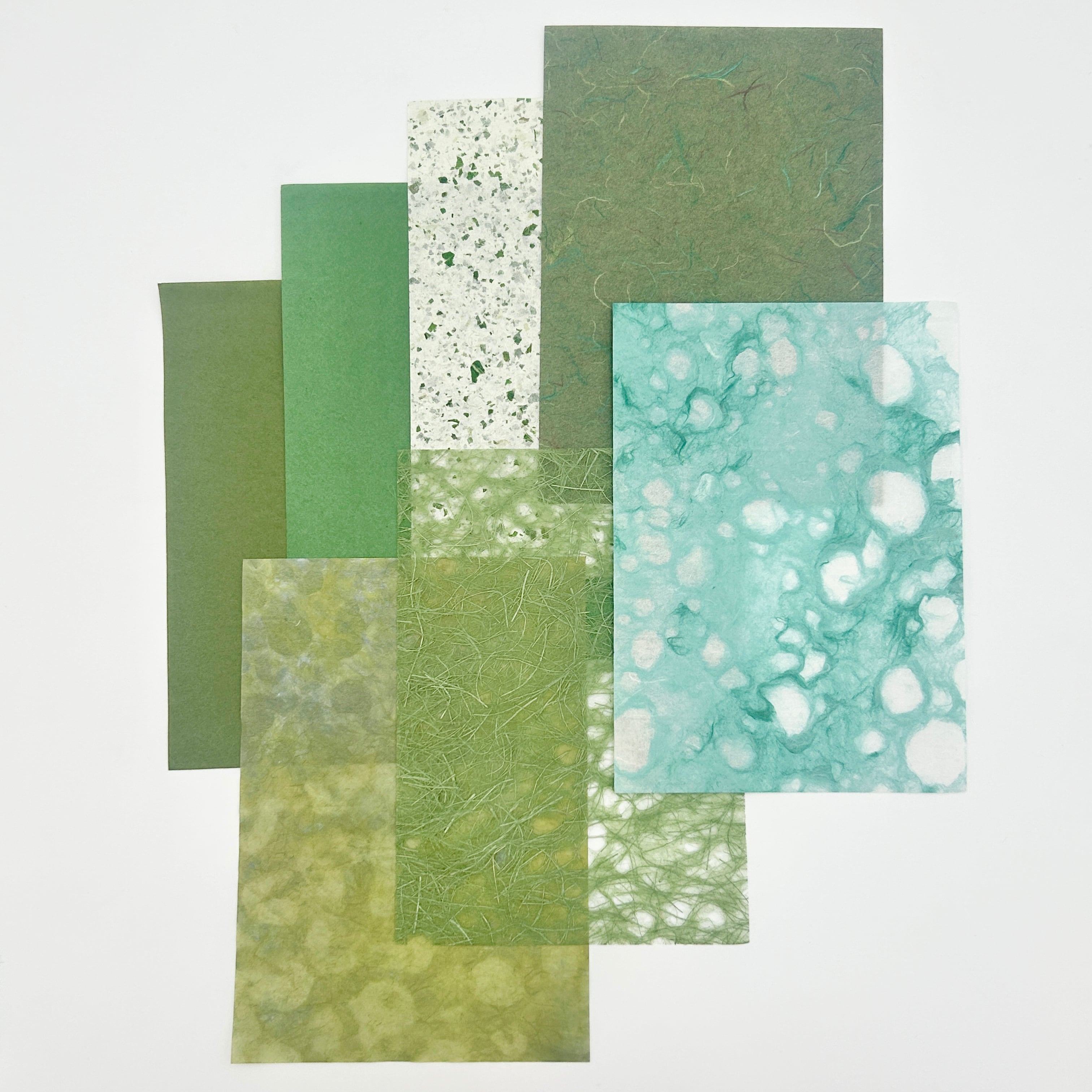 年輪を重ねた常緑のような色合いの和紙を集め、
