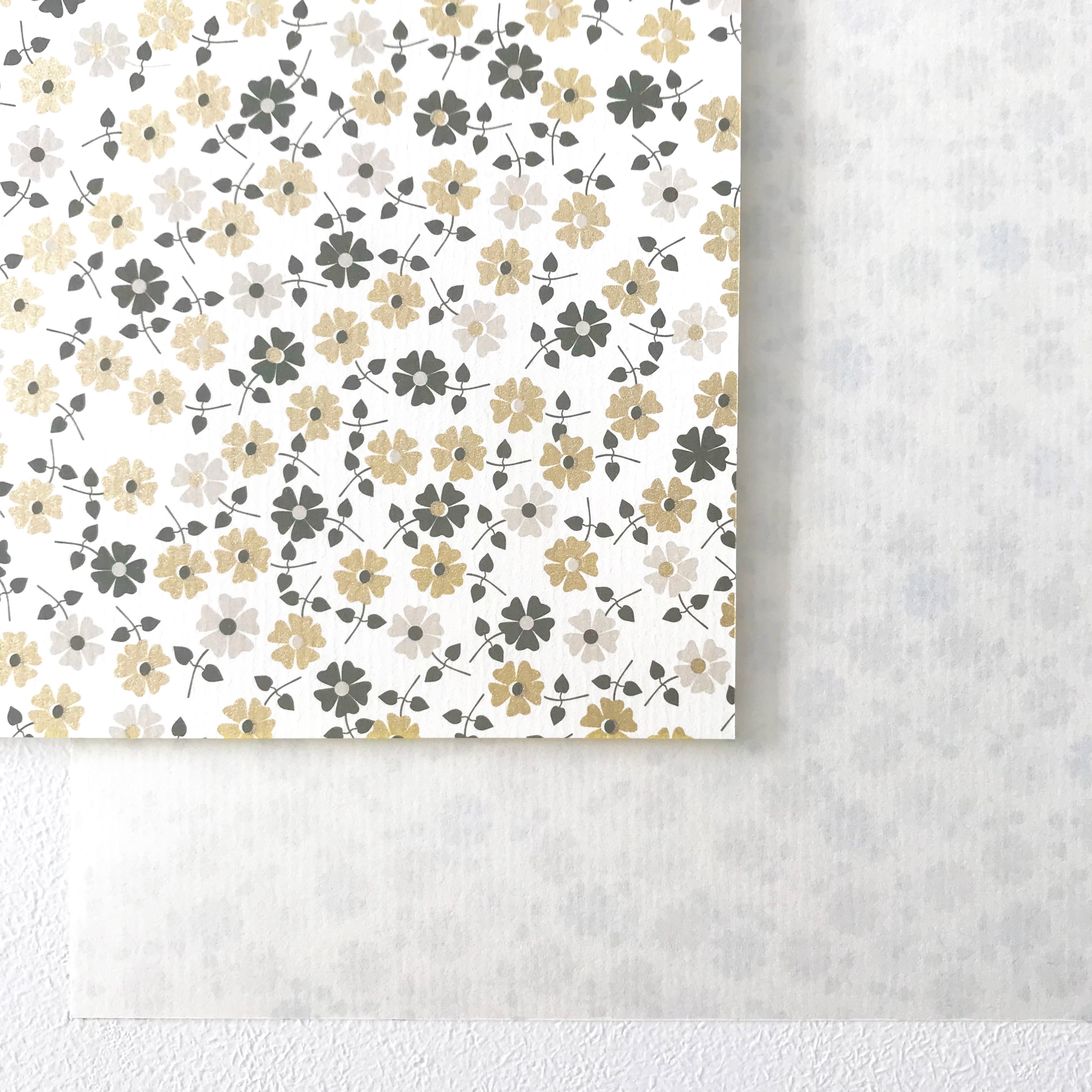 金粉印刷を施しているので光を受けるたびにきらめき、表情が変わる一枚です。