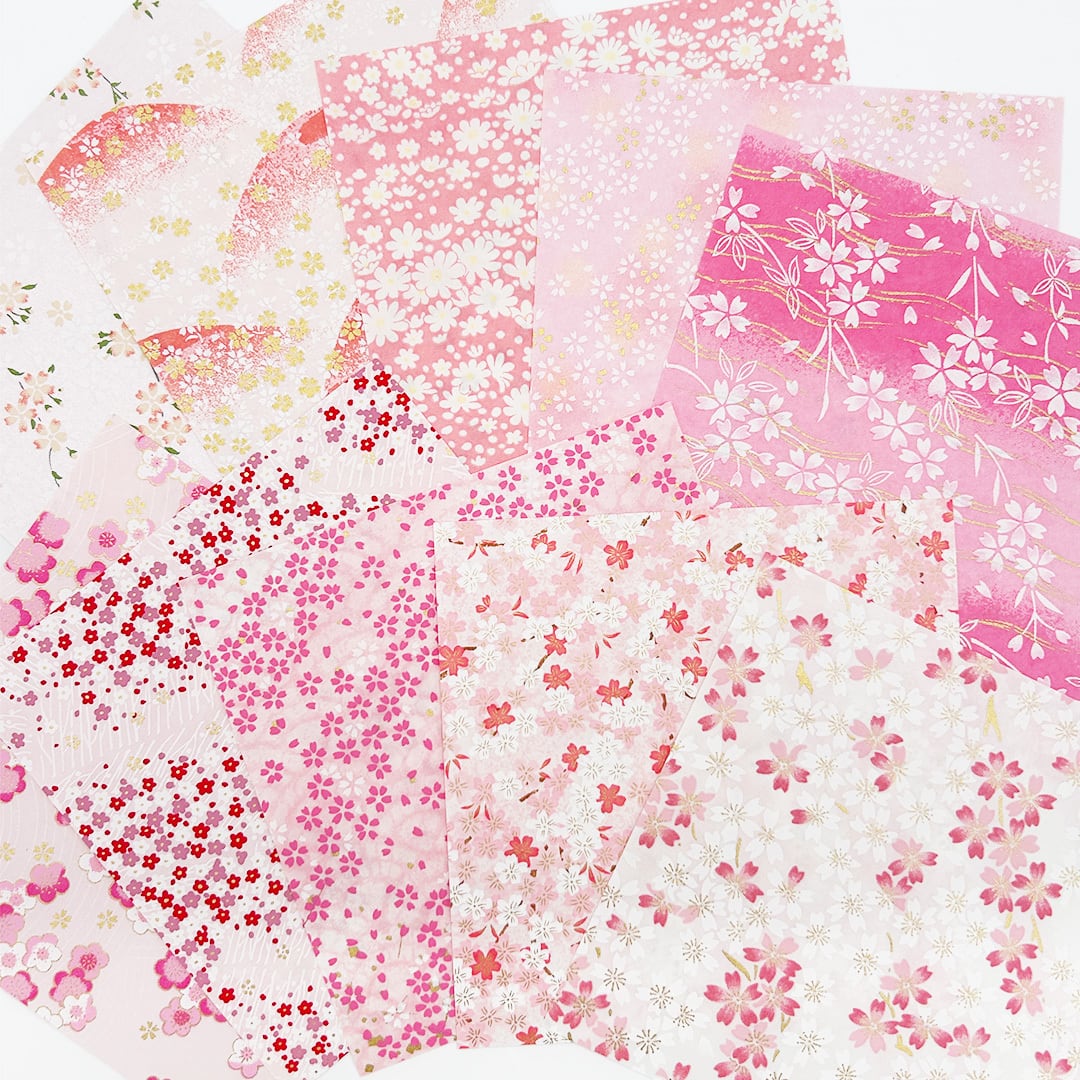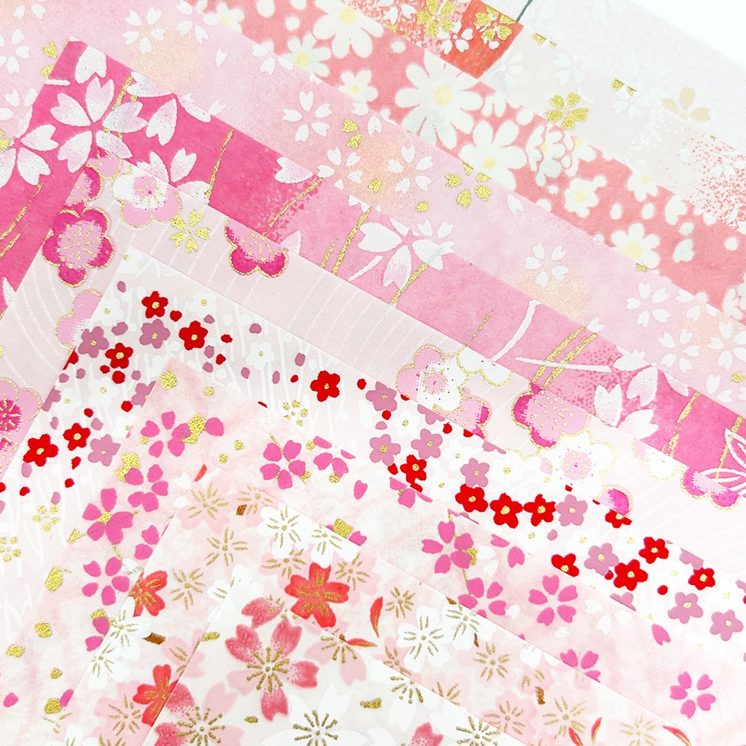 桃色を基調としたさまざまな柄の友禅紙を詰め込みました。