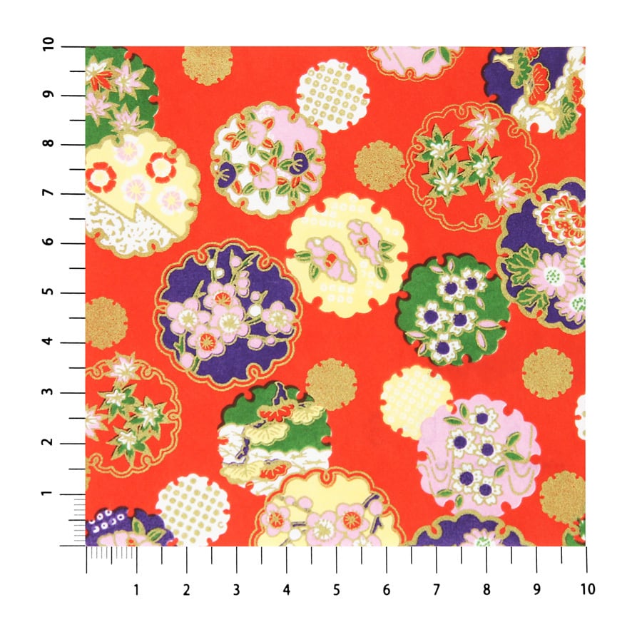 手染友禅紙 (A4判):花四季雪輪文・赤