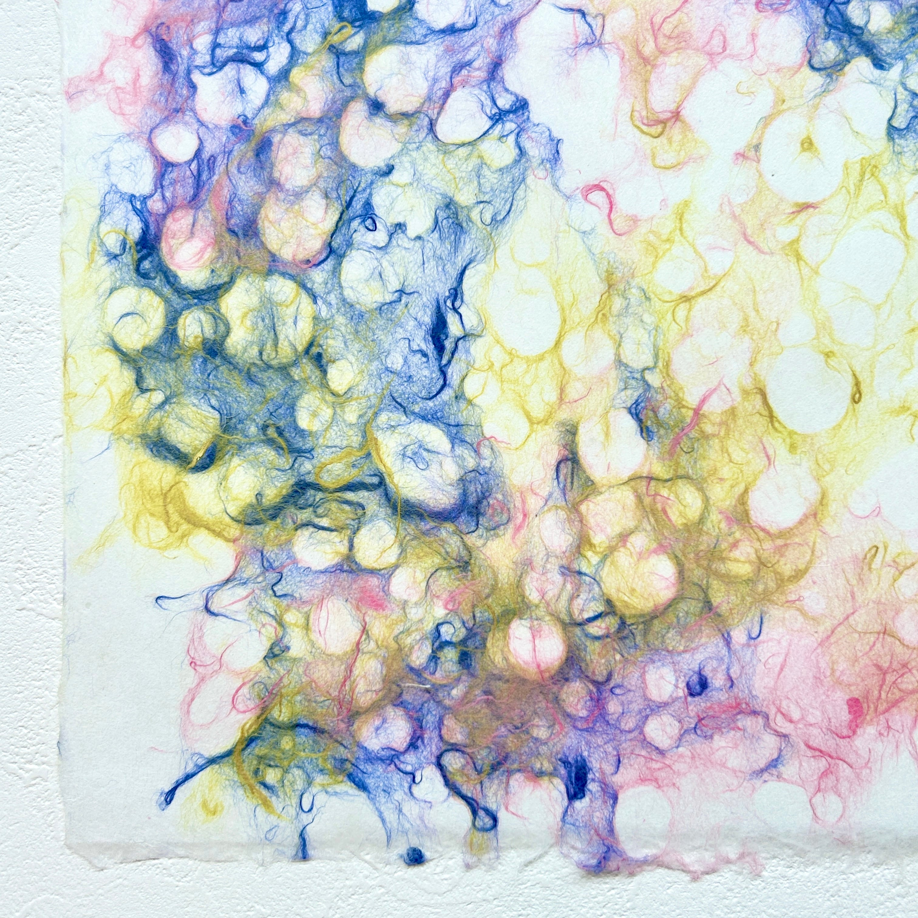 埼玉県小川町で作られた、青・ピンク・黄緑の繊維が漉き込まれている和紙です。